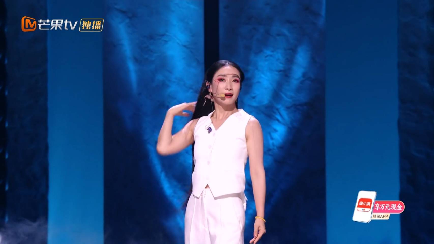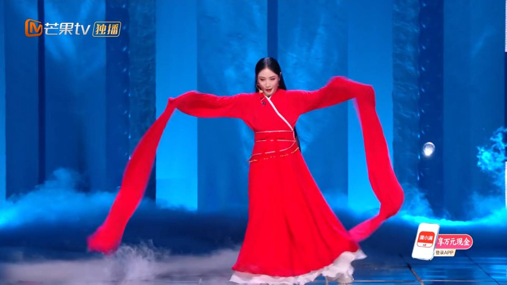 现场干冰雾气太重,她看不清脚下路,穿着长裙步步谨慎,生怕摔倒,舞蹈脚步动作全被遮挡,观感大打折扣。